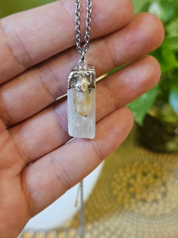 El dije de Selenita con Citrino es un amuleto para afianzar la espiritualidad en nuestro ser.