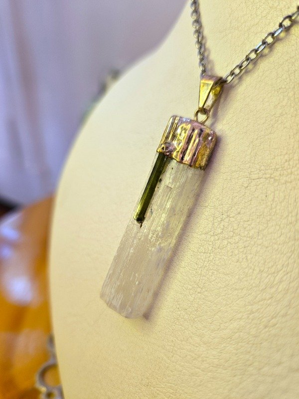 Se combina con una turmalina verde que, como característica principal, ofrece protección y el arraigo terrenal; su verde se enfoca con atraer la calma mental.